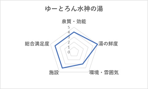 | ゆーとろん水神の湯 | 4 | 5 | 3 | 4 | 4 |
