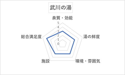 | 泉質・効能 | 湯の鮮度 | 環境・雰囲気 | 施設 | 総合満足度 | |