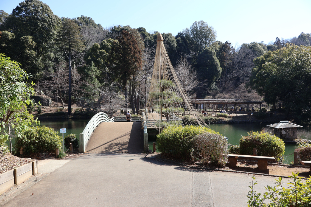 池の方に向かうと、雪吊りがされている木がありました。