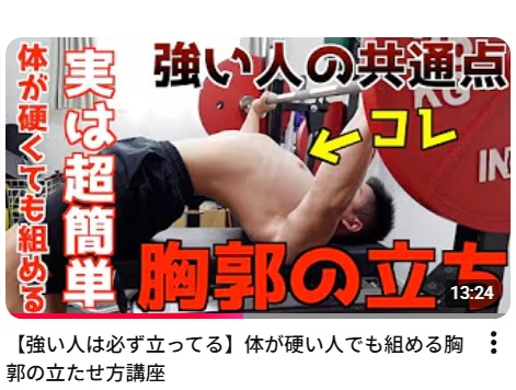 YouTubeではベンチプレスのためのストレッチの方法やフォームの組み方が幾つも紹介されています。