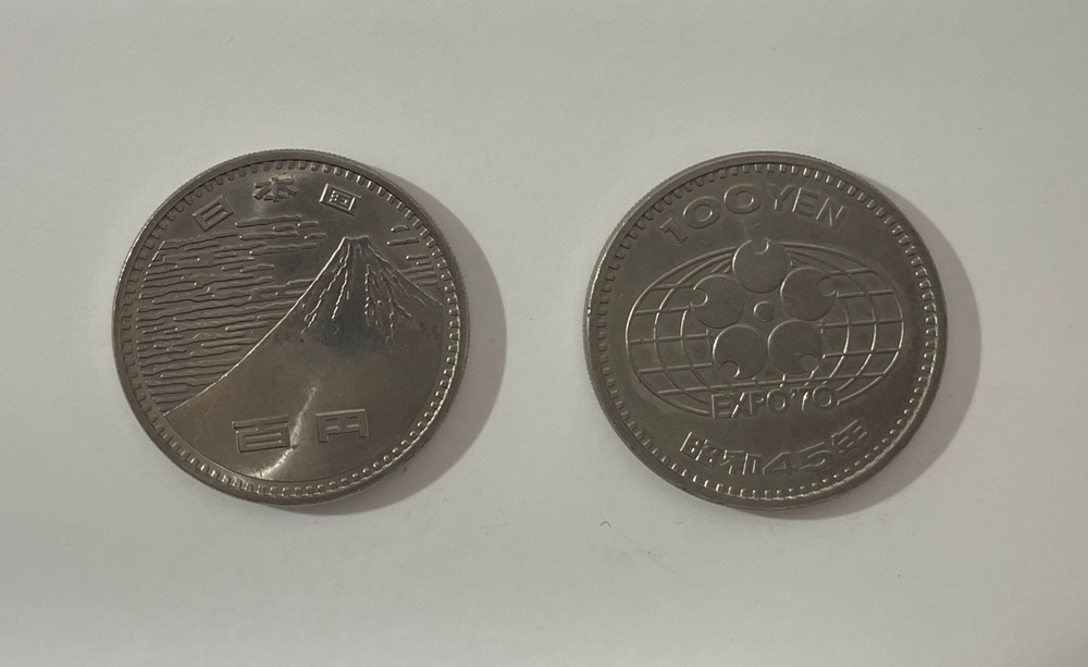 好きなデザインは、昭和45年の大阪万博の100円硬貨です。