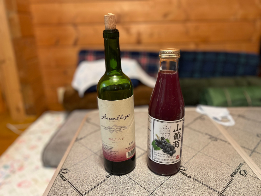 今回は今飲み頃と、すすめられたアッセンブラージュ赤 と山ぶどうジュースを購入しました。