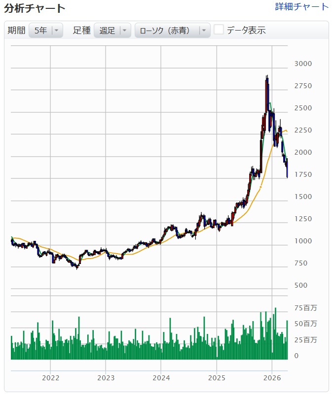 2026年の末近くでは2800円近くまで株価は上がりましたが、