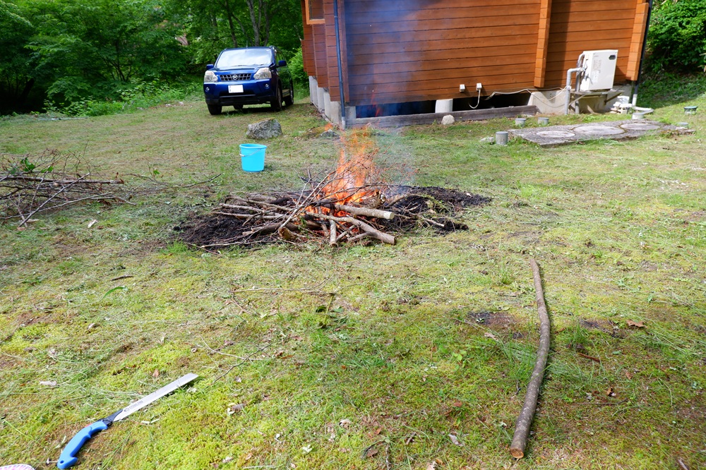 季節は5月です。山小屋では焚火をしたりして遊んでいます。