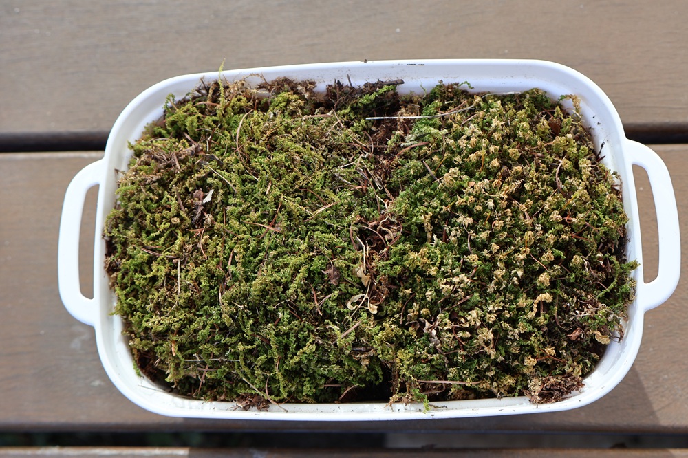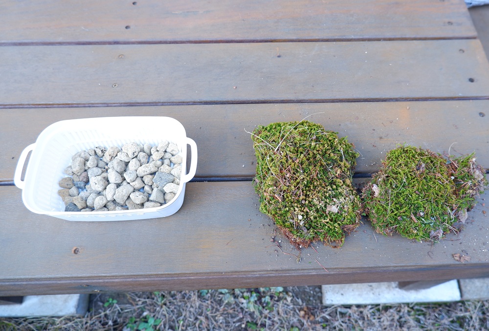 2箇所の別のエリアから採取した苔を簡易的なプランターに植えることにしました。