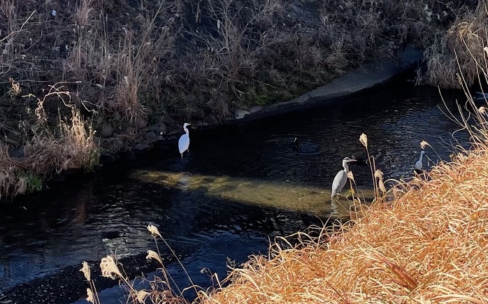 この日もアオサギ、ダイサギ、チュウサギなどを見かけました。
