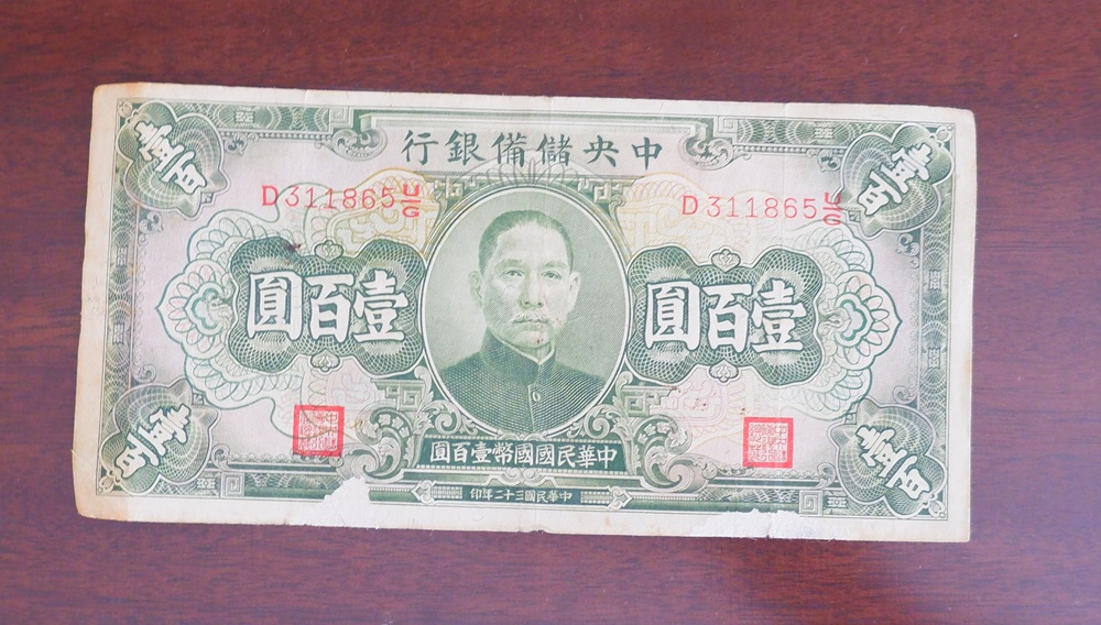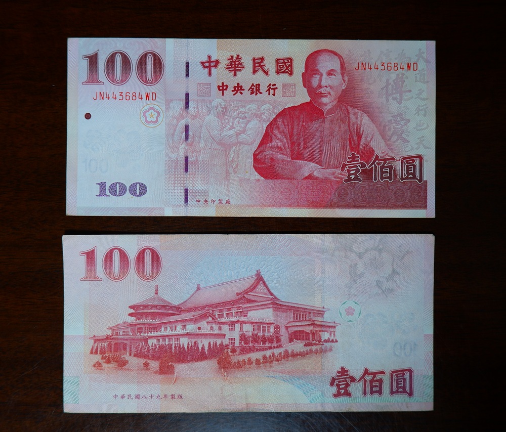 もう一つは、台湾の旧紙幣や現行紙幣の100元札です。