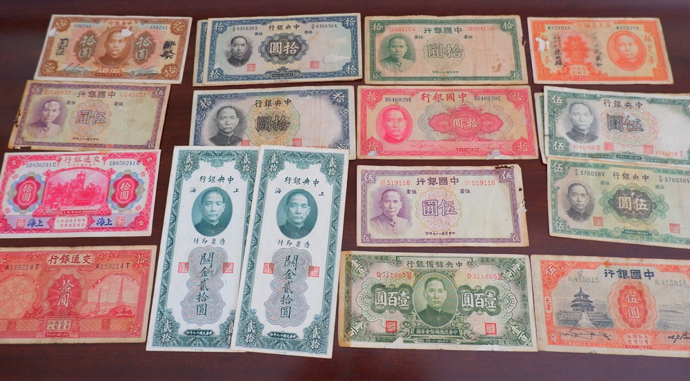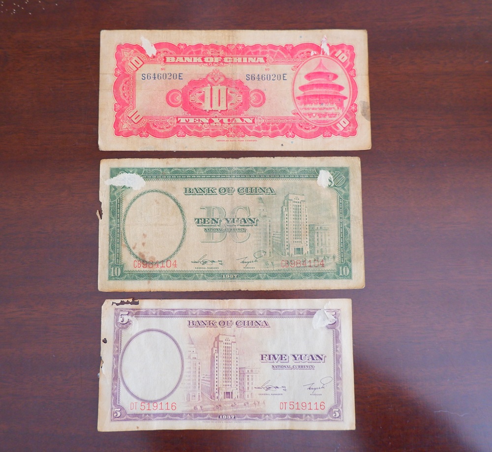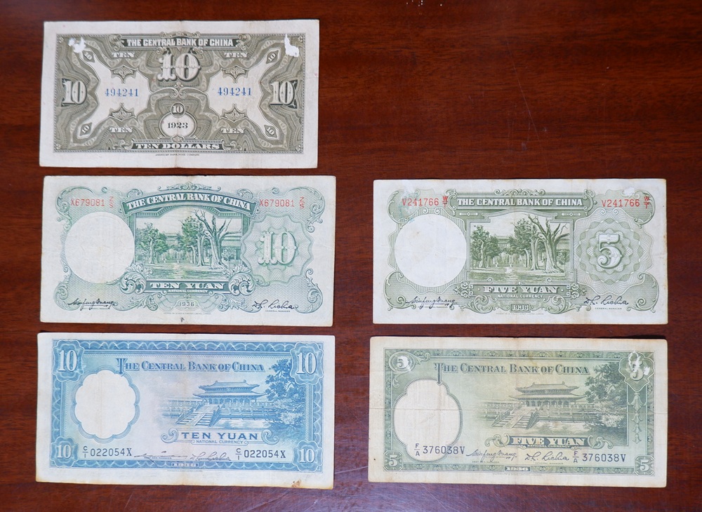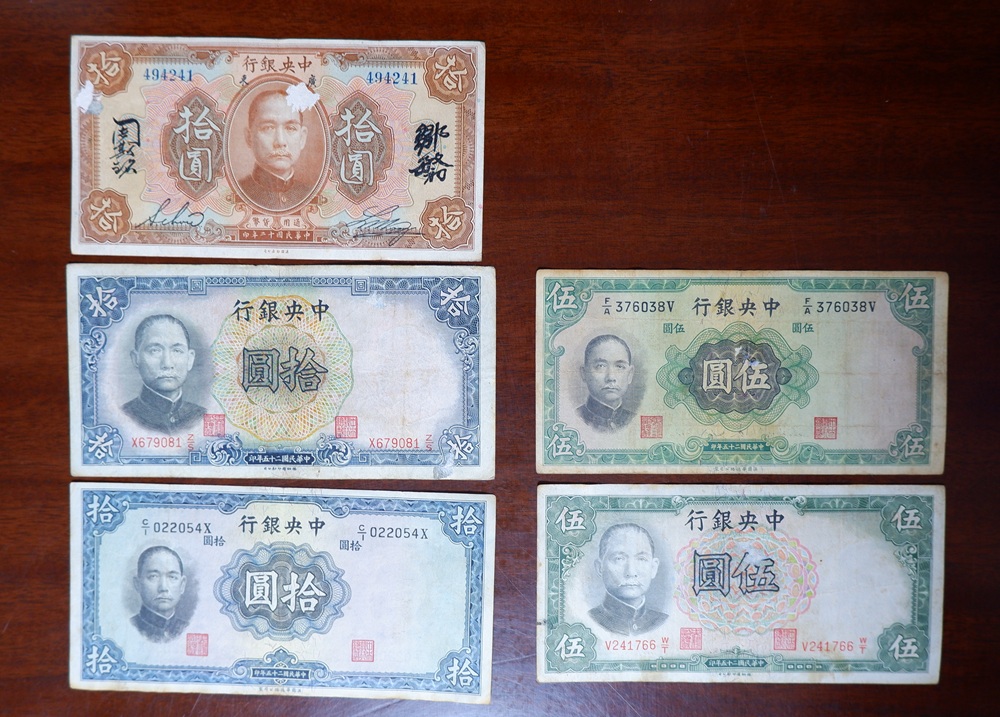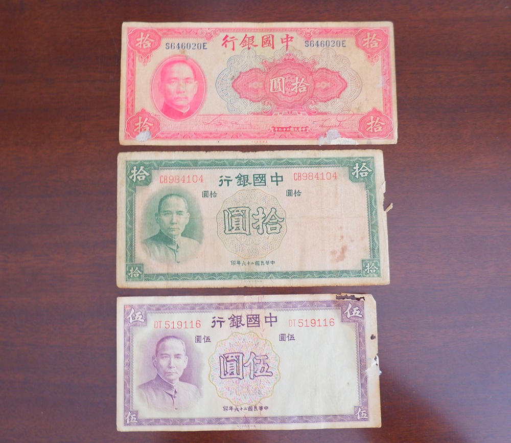 中央と下の10元札はどちらも、中華民国二十五年印です。
