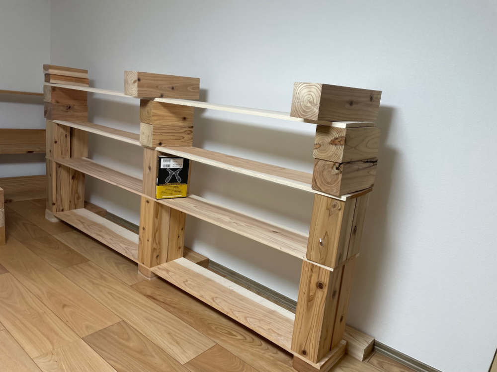 今回は材料を買って、重ねるだけの本棚にチャレンジしてみました!