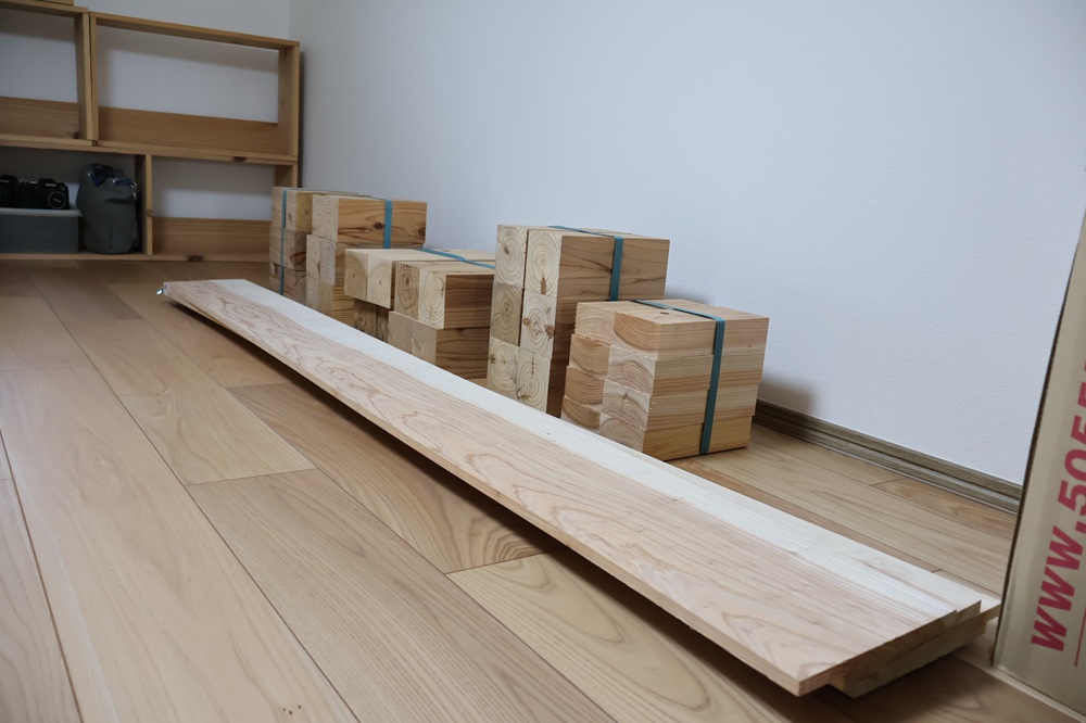 今回の本棚の材料です。意外と少なく感じます。
