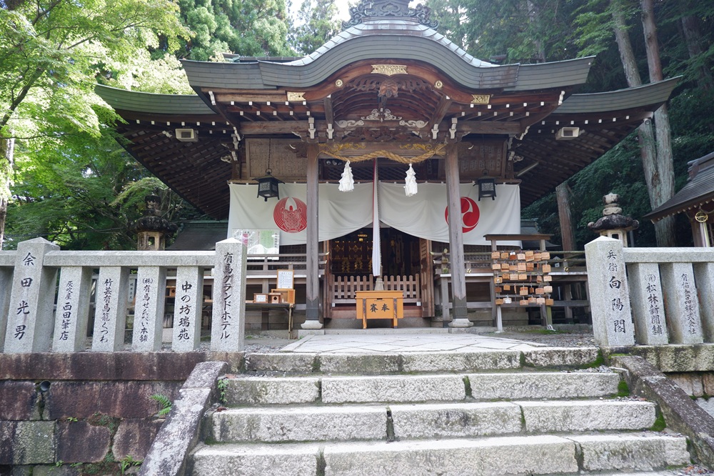 湯泉神社(とうせんじんじゃ)の主祭神は、 大己貴命、少彦名命、熊野久須美命(有馬温泉鎮護三神)です。