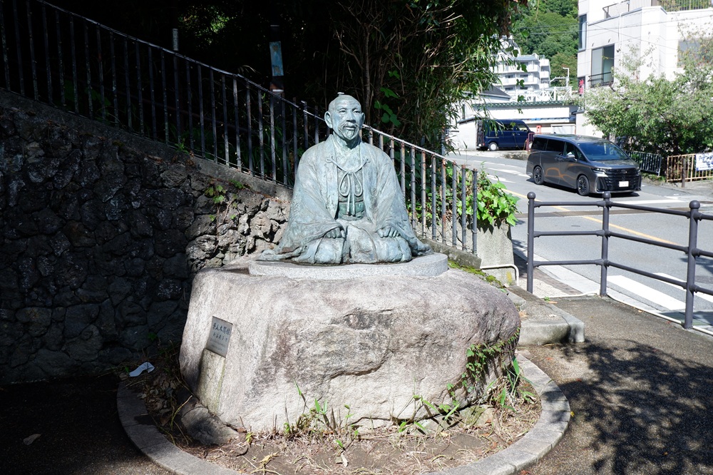 駅の近くに秀吉像があります。有馬温泉には、湯殿、橋など太閤の名がついたものが多くあります。