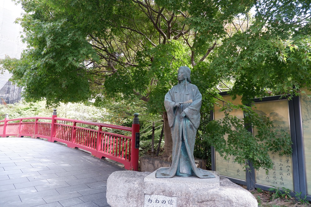 有馬川沿いにはねね像が秀吉像と向かい合うように建てられています。