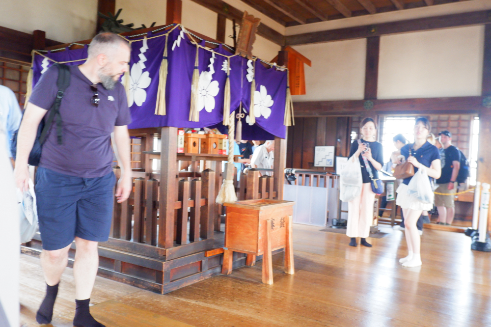 姫路城の天守閣の階段は比較的幅が広いほうですが、それでも用心して登り、下りする必要があります。