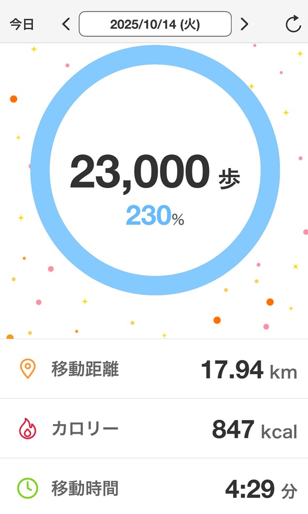 歩数計では22,719歩でした。