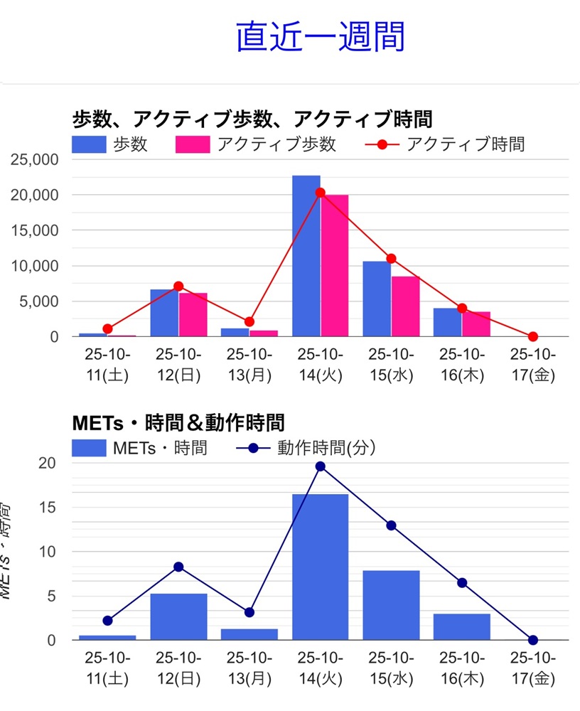 こちらは歩数計のデータをスマホアプリで表示したものです。