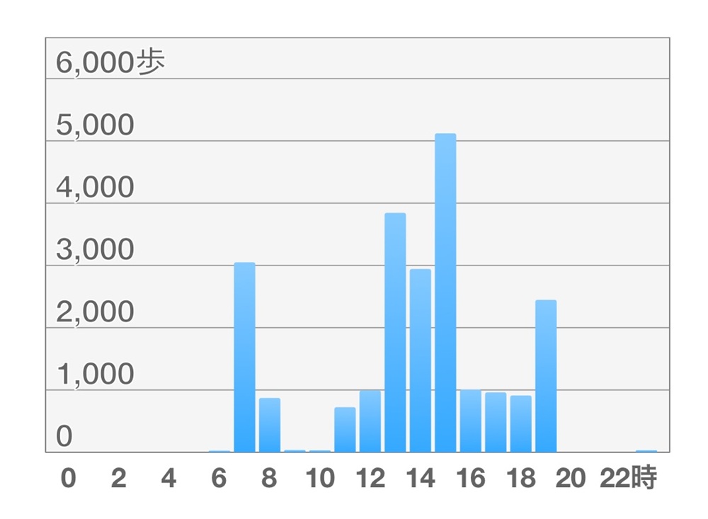 スマホのアプリは優れもので、時間ごとの歩数を測ってくれます。